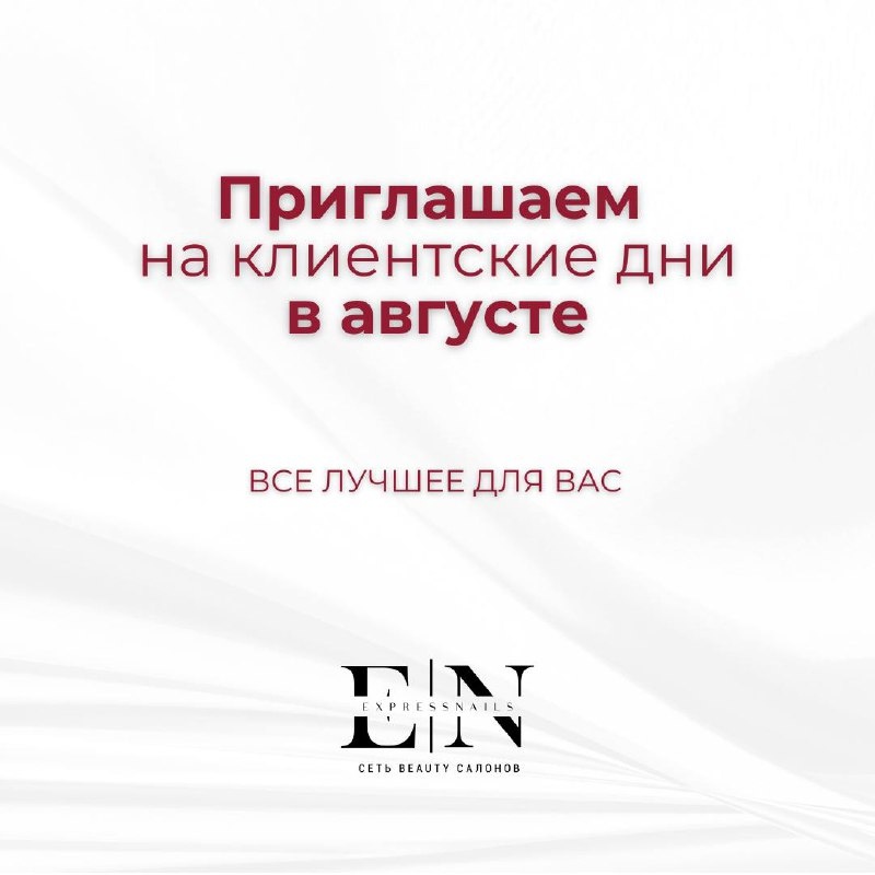 ✨Клиентские дни августа в EN Beauty! Приглашаем вас на особенные дни красоты и заботы! 📅Дата: 08.08 🛍️Бренд: LADOLEAY 📍Салон: ул. Удальцова д.65 📅Дата: 11.08 🛍️Бренд: LADOLEAY 📍Салон: ул. М.Никитская, д.2/1 📅Дата: 20.08 🛍️Бренд: EGIA 📍Салон: ул. Удальцова д.65 📅Дата: 20.08 🛍️Бренд: LADOLEAY 📍Салон: ул. Береговой проезд, д.5, к.2 📅Дата: 25.08 🛍️Бренд: LADOLEAY 📍Салон: ул. Б.Никитская, д.35 Что вас ждёт? 🌱Бесплатные консультации от экспертов 🌱Специальные предложения и бонусы 🌱Уютная атмосфера и угощения Создайте своё весеннее преображение вместе с нами!Записывайтесь заранее, количество мест ограничено! #бНикитская #мНикитская #удальцова #фили #клиентскиеДни