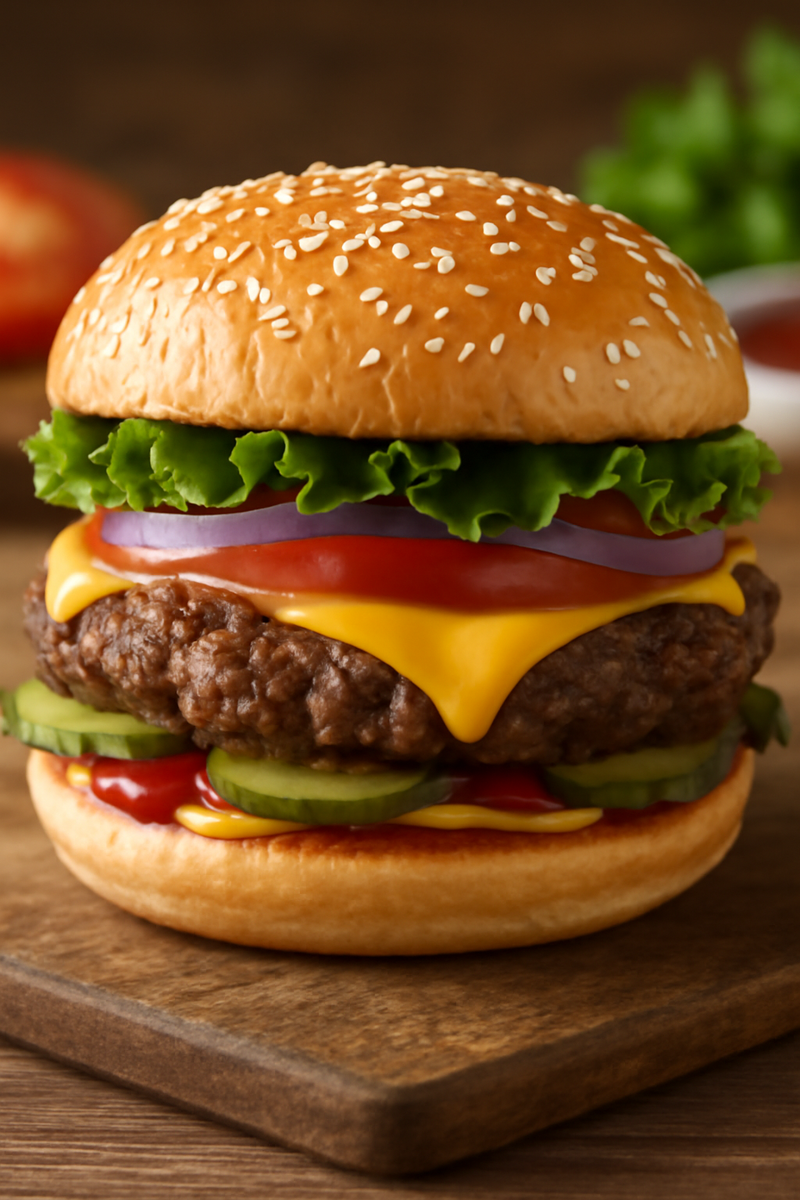 Если ты когда-нибудь был в США или просто смотрел американские фильмы, ты наверняка заметил, как там обожают свои бургеры. Это не просто еда, это целая культура. Сочные котлеты, вкусные булочки, свежие овощи и, конечно же, секретный соус — все это делает бургер королем фаст-фуда. Сегодня я расскажу, как приготовить идеальный бургер в домашних условиях, который не уступит ресторанному. Готов? Погнали! 🤩 Перед тем как начать готовить, давайте немного углубимся в историю этого знаменитого блюда. История бургера уходит корнями в конец 19 века, когда немецкие эмигранты привезли с собой концепцию мясных котлет, обжариваемых на гриле. Однако популярность бургеры приобрели именно в Америке, где были придуманы первые «бутерброды» с мясом между булочками. Сегодня бургер — это не просто еда, а часть культуры и жизни США. Для того чтобы создать бургер, который бы отвечал всем канонам, тебе понадобятся следующие ингредиенты: Итак, начнем с котлет. Для этого в большой миске соединяем говяжий фарш,