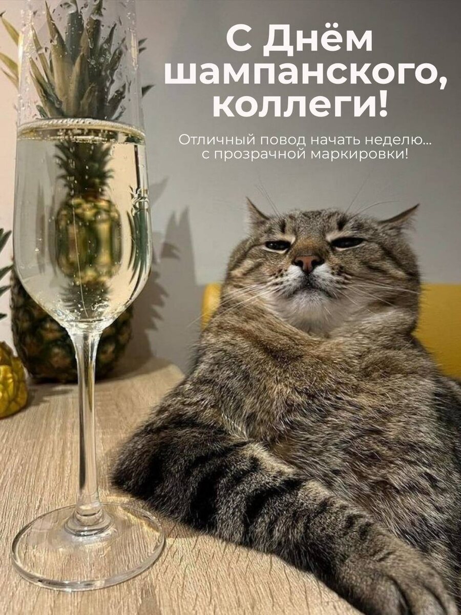 С Днём шампанского, коллеги! Отличный повод начать неделю... с прозрачной маркировки! 🥂 Пусть в бокалах — пузырьки, а в системе — полная прозрачность. И чтобы вся продукция, как шампанское, — игристая, проверенная и с кодом честности. Ну, и конечно, самое время обратиться к нам за подробной консультацией по работе с «Честным знаком» +7-901-132-03-70