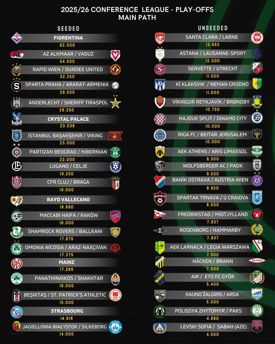 ⚡️Сегодня состоится жеребьёвка плей-офф Лиги конференций УЕФА.
