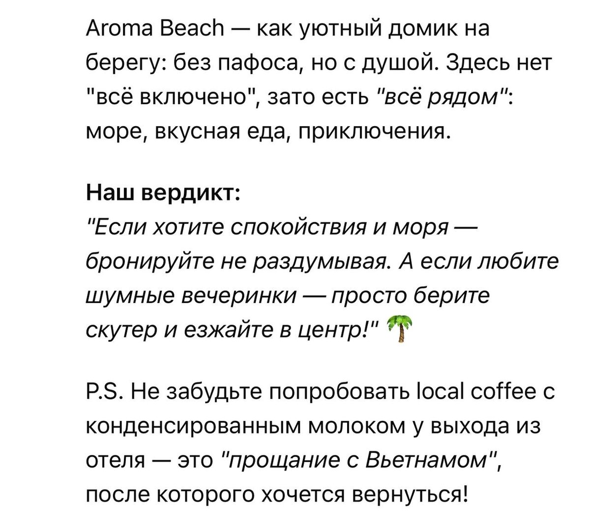 P.S. Не забудьте попробовать local coffee с конденсированным молоком у выхода из отеля - это "прощание с Вьетнамом", после которого хочется вернуться!