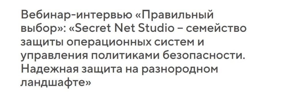 Компания «Код Безопасности» – системообразующая российская ИТ-компания, лидер в разработке средств защиты информации. Продукты «Кода Безопасности» предназначены в основном для государственных организаций и больших компаний с госучастием, они охватывают защиту сетей, конечных станций, виртуальных сред и мобильных устройств. Во время мероприятия обсудят: Оригинал публикации на сайте CISOCLUB: "Вебинар "Secret Net Studio – Семейство защиты операционных систем и управления политиками безопасности. Надежная защита на разнородном ландшафте"". Смотреть публикации по категориям: Новости | Мероприятия | Статьи | Обзоры | Отчеты | Интервью | Видео | Обучение | Вакансии | Утечки | Уязвимости | Сравнения | Дайджесты | Прочее. Подписывайтесь на нас: VK | Rutube | Telegram | Дзен | YouTube.