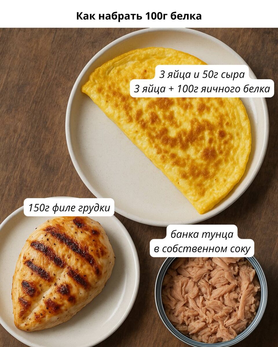 К вопросу: – «А как съесть столько белка???» Вот так 🤌🏼 Да, к этому вы добавляете картофель, хлеб, крупу и овощи, будет побольше Но вот разве 100г набрать все еще сложно? А теперь представьте сытность такого рациона, его вкус, качество и то, какие результаты вы от него получите. Я уверяю вас – вы достаточно быстро привыкнете, если начнете. Будет не легко, но просто. Главное — не усложняйте!