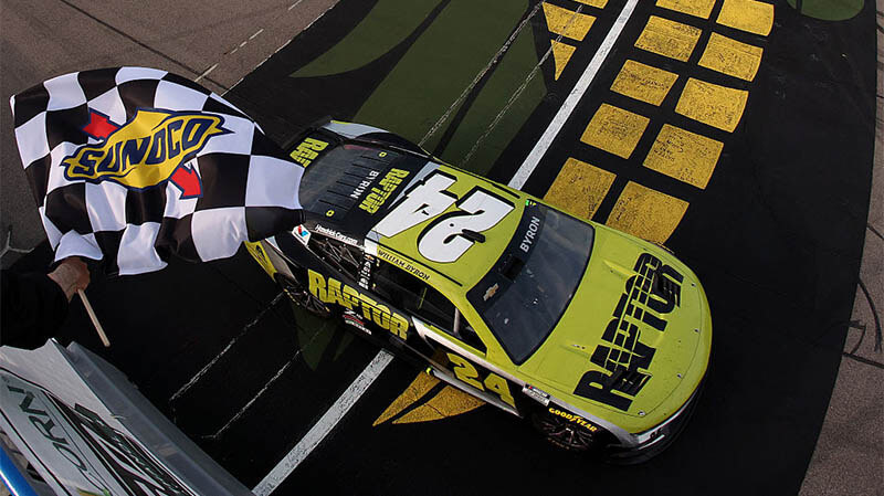 Необычайное количество желтых флагов в воскресной гонке Iowa Corn 350 позволило Уильяму Байрону сэкономить невероятное количество топлива, и это сыграло решающую роль во второй победе в сезоне и первой после Daytona-500. Проехав 144 круга из своего топливного элемента на трассе Iowa Speedway, где запас хода составляет примерно 100 кругов, Байрон пересек финишную черту, опередив троих преследователей — обладателя поула Чейза Бриско, победителя первого и второго сегментов Брэда Кезеловски и действующего победителя гонки Райана Блэйни, — все они использовали разные стратегии. Преимущество Байрона над Бриско, занявшим второе место, составило 1,192 секунды. Кезеловски оказался третьим, а Блэйни — четвертым. Оба оказались на расстоянии корпуса машины от занявшего второе место на финишной прямой. Во время праздничного выжигания шин на главной прямой у его «Chevrolet Hendrick Motorsports» #24 закончилось топливо, и ему пришлось прервать дымовое шоу. «Чувак, как насчёт экономии топлива?», — рит