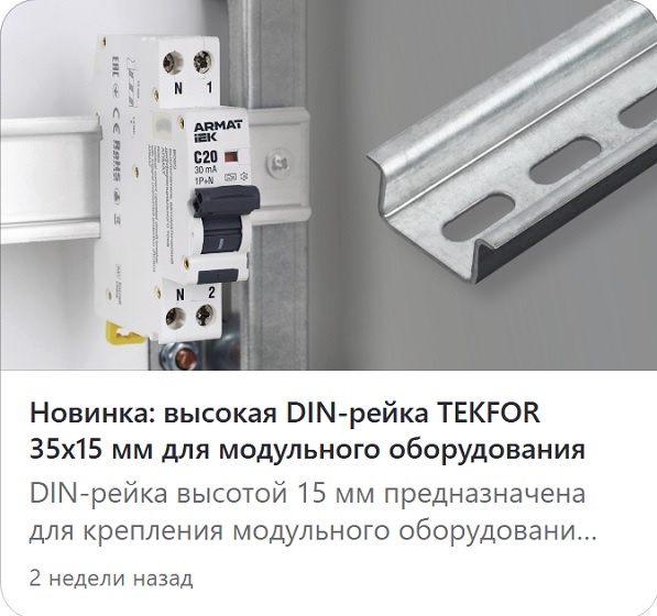 На канале IEK GROUP 17 июля 2025 г. опубликована следующая статья: Название и содержание статьи свидетельствует о некомпетентности лица, её подготовившего: Правильное название изделия «монтажная рейка» автором статьи заменено жаргоном «DIN-рейка». В стандарте IEC 60715:2017 «Dimensions of low-voltage switchgear and controlgear – Standardized mounting on rails for mechanical support of switchgear, controlgear and accessories» – «Размеры низковольтной коммутационной аппаратуры и аппаратуры управления. Стандартизированный монтаж на рейках для механического крепления коммутационной аппаратуры, аппаратуры управления и аксессуаров» определён термин «монтажная рейка»: В ГОСТ IEC 60715–2021 «Аппаратура распределения и управления низковольтная. Установка и крепление на направляющих электрических аппаратов в устройствах распределения и управления», подготовленный на основе стандарта IEC 60715:2017, это изделие также названо монтажной рейкой. Причём это название, по крайней мере, известно с 1 янв