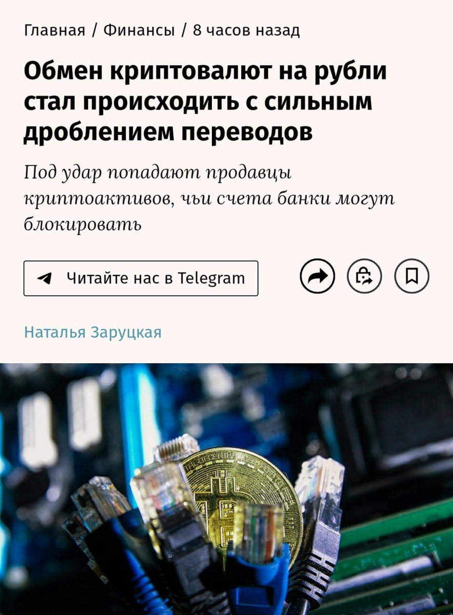 ⚡️Криптопереводы жёстко ДУШАТ в России. Обменники вынуждены дробить рублёвые выплаты на десятки мелких платежей — иначе банки автоматически блочат им счета, а ваша крипта рискует просто потеряться. Доходит до смешного — дробят даже жалкие платежи по 10 тысяч рублей. Кому-то платёж в 84 тысячи раздробили аж на 34 (!) части. Продавцы идут на такое безумие, чтобы не рисковать — но и этот способ могут скоро прикрыть. От криптообменников потихоньку отвыкаем. Бесплатный GPT-bot ⚡️НейроМастер⚡️