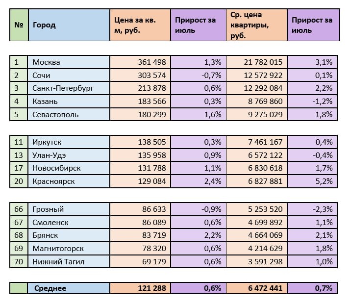 Цены на вторичное жилье в Иркутске продолжили рост в июле Рынок недвижимости Иркутска демонстрирует стабильный рост цен, соответствующий общероссийской тенденции. В июле средняя цена квадратного метра жилья в городе увеличилась на 0,3%, а стоимость типовой квартиры превысила 7,4 млн рублей. Данные приводит портал «Мир квартир». Динамика цен в Иркутске близка к общероссийским показателям, где средняя стоимость квадратного метра составила 121,3 тыс. рублей с ростом на 0,6%. Среди соседних городов более высокие темпы роста показали Красноярск (+2,4%) и Новосибирск (+1,1%). Лидерами по стоимости жилья остаются Москва и Сочи, где цена квадратного метра превышает 300 тыс. рублей. «Ипотека, несмотря на снижение ставок в последние дни, все еще остается недоступной для широких кругов потребителей. Чтобы восстановить спрос на рынке недвижимости, ставки по жилищному кредитованию должны упасть по крайней мере до 10%. Тогда семья со средним доходом сможет ее себе позволить. Правда, тогда возобн