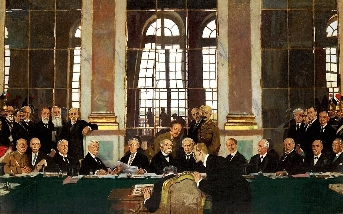 🔖Վերսալյան պայմանագիր 28 հունիս 1919թ․ Գերմանիան բանակցություններ չի վարում․․․ Նրան ստիպում են ստորագրել։ Արտացոլանքը նրանց ետևում խեղաթյուրված է Ինչպես և պայմանագիրը Գեներալ ՖՈՇԸ կասի «Սա խաղաղություն չէ,այլ զինադադար 20 տարով » Նա սխալվեց ընդամենը երկու ամսով ։ Երկրորդ համաշխարհայինը սկսեց 01սեպտեմբեր1939 թ․-ին