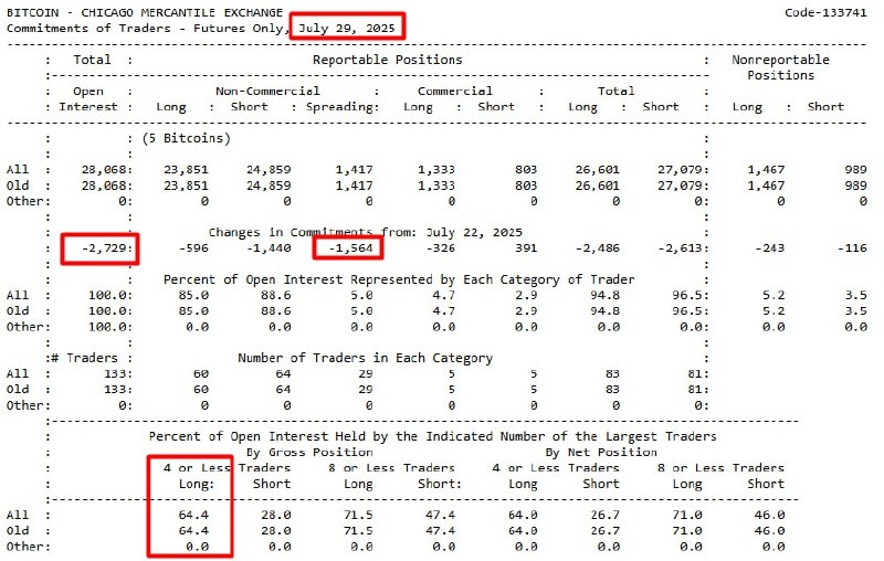 В ответ на пост #btc #cftc По биткоину фиксируется резкий отток интереса: открытый интерес снизился на 2700 контрактов. Фонды сократили как лонги, так и шорты, но шортов закрыли больше — чистая позиция улучшилась. Арбитражники массово вышли из рынка, коммерсы тоже убрали часть лонгов. Ритейл снизил позиции в обе стороны. Несмотря на общее снижение активности, доля крупных игроков в лонгах остаётся высокой. Структура осталась нейтральной, рынок сбросил перегрев, но контроль по-прежнему у крупных. 📱 YouTube 🚀 PREMIUM 📈 Bybit