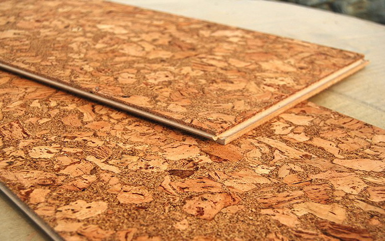 - Пробковый ламинат (иногда называют паркетом) может быть разной толщины, но в среднем это 6 и 10 мм. Первый вариант укладывается только на клей и на идеально ровное основание. Второй имеет классическое замковое соединение и допускает перепад на поверхности пола в 1 мм на каждый метр. В основе замкового ламината ХДФ плита, она обеспечивает жесткость покрытия. Клеевой состоит только из пробки — пробковая подложка в качестве основания и декоративный пробковый слой сверху. Водостойким будет только клеевой вариант! У замкового пробкового ламината устойчивы к воде только несколько слоев, а вот ХДФ при намокании разбухнет и пол деформируется.