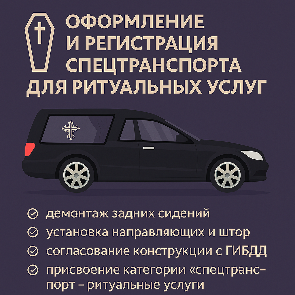 Оформление и регистрация катафалка: что нужно знать? Переоборудование автомобиля под ритуальный транспорт (катафалк) — это не просто снятие сидений и установка шторок. Это официальное изменение конструкции, которое обязательно должно быть задокументировано и зарегистрировано в ГИБДД. 📋 Что входит в переоборудование под катафалк: • Демонтаж заднего ряда сидений • Установка платформы, направляющих или подиума для гроба • Шторы, обивка, перегородка между водителем и грузовой частью • Надписи и атрибутика ритуального назначения ⚠️ По закону: Изменения конструкции требуют согласования Без регистрации — штраф, отказ в техосмотре, проблемы при продаже Транспорт должен быть внесён в категорию "специальное ТС" для ритуальных услуг ✅ Как оформить правильно: Получить заключение о возможности переоборудования Произвести установку оборудования Пройти техническую экспертизу Зарегистрировать изменения в ГИБДД Получить новый ПТС/СТС с отметкой "спецтранспорт – ритуальные услуги" 💬 Занимаетесь