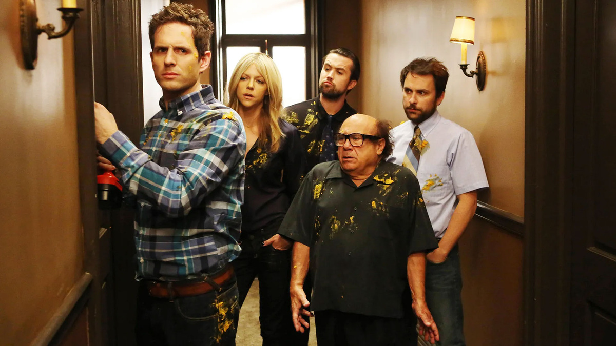 Итак, знакомьтесь. Чарли (Дэй) — неграмотный мастер на все руки, глуповат, так как нюхает клей, работает в пабе «У Пэдди» уборщиком. Деннис (Хауэртон) и Диандра (Кэйтлин Олсон), двойняшки; он — совладелец паба, невыносимый нарцисс, плейбой, не знающий слова «нет», она — актриса-неудачница с комплексом неполноценности, объект всеобщих насмешек, работает в пабе официанткой. Мак — второй совладелец заведения, типичный альт-райт: ультракатолик, мачо с зализанными назад волосами, обожающий майки-алкоголички; его отец сидит за торговлю метом. Гипертрофированно олдскульная маскулинность Мака — источник бесконечных шуток, подвергающих сомнению его гетеросексуальность; в конце концов он все-таки совершает каминг-аут. Во втором сезоне к этой шайке (они так себя и называют) присоединяется пятый — герой Денни ДеВито (единственная звезда в сериале, его появление резко увеличило аудиторию шоу), обеспеченный и одиозный отец Денниса и Диандры. Из своего отстойного кабака герои выходят только по особым случаям, а из города выезжают всего несколько раз за 15 сезонов. Но при этом демонстрируют невероятный гипертрофированный общеамериканский патриотизм правого толка.