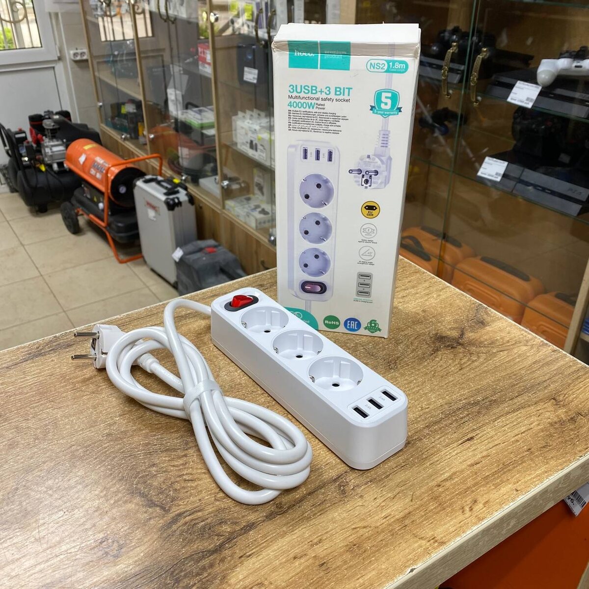 Сетевой фильтр HOCO NS2 3EU розетки+ 3xUSB, 2.4А / 4000Вт / 1,8м