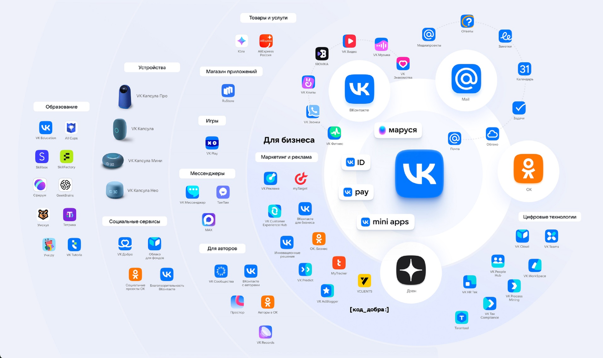 - Единая экосистема: если ценность компании в том, что её сервисы работают вместе (Google, VK), делают упор на бренд.