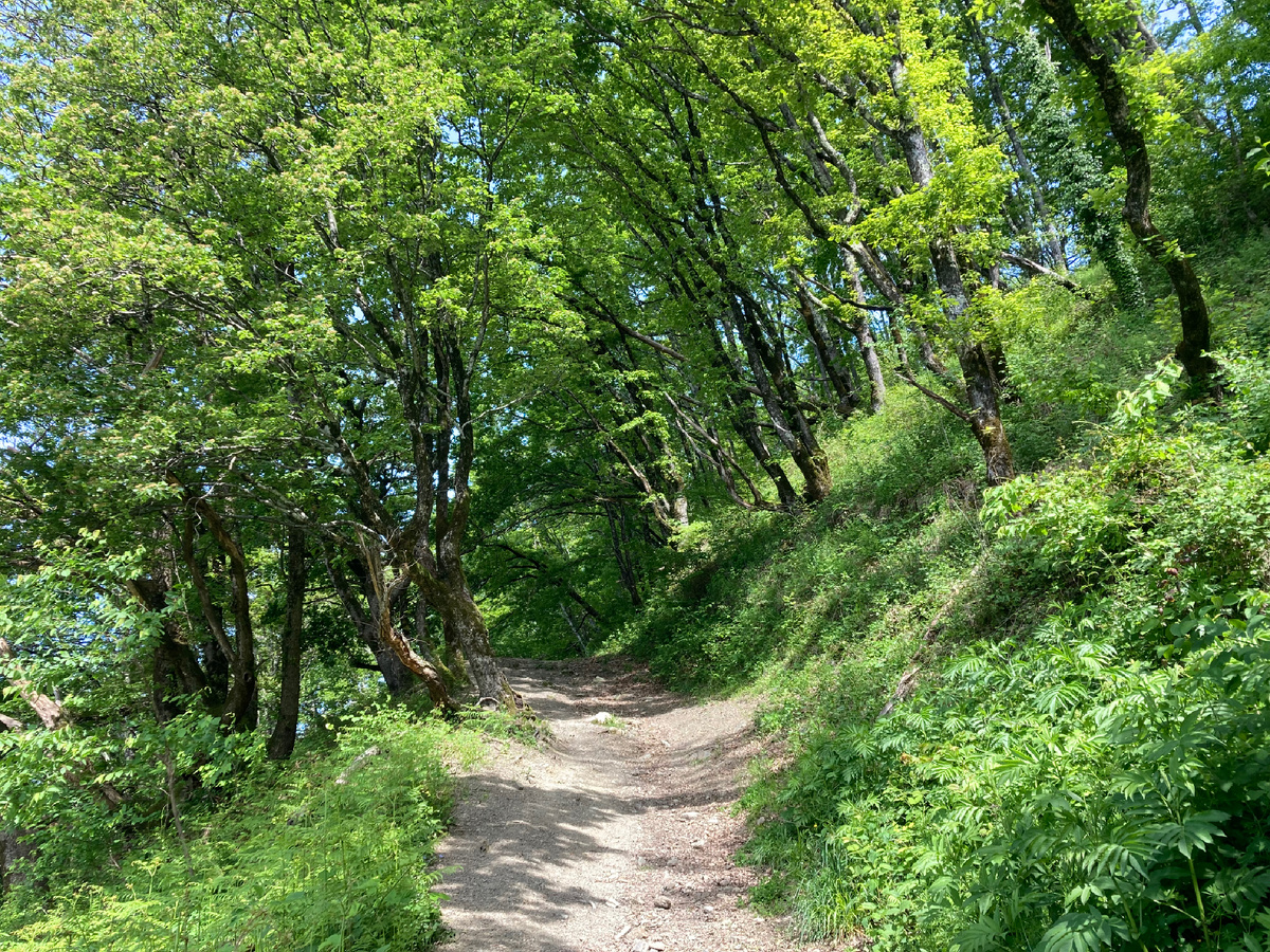 ДЛИНА МАРШРУТА - 2,6 КИЛОМЕТРА В ОДНУ СТОРОНУ. НАБОР ВЫСОТЫ - ВПЕРЁД 150 МЕТРОВ, А НАЗАД 180 МЕТРОВ Это достаточно лёгкий маршрут, но он идёт в очень красивые места. Большая часть маршрута пролегает по хребту, где особенно хорошо идти летом, потому-что на гребне горы дует ветерок, который немного помогает развеять летнюю жару. Чтобы попасть на начало маршрута вам понадобится автобус № 104. Он едет по маршруту ''клуб строитель - гипермаркет магнит,, добирайтесь до ближайшей к вам конечной, садитесь на автобус и едете 20-15 минут до остановки ресторан Дудук. От остановки спускаемся по дороге немного вниз. Первый поворот налево вам не нужен, сворачивайте на втором повороте налево, на лесную дорогу. Лесная дорога постепенно поднимается. Влево с неё откры