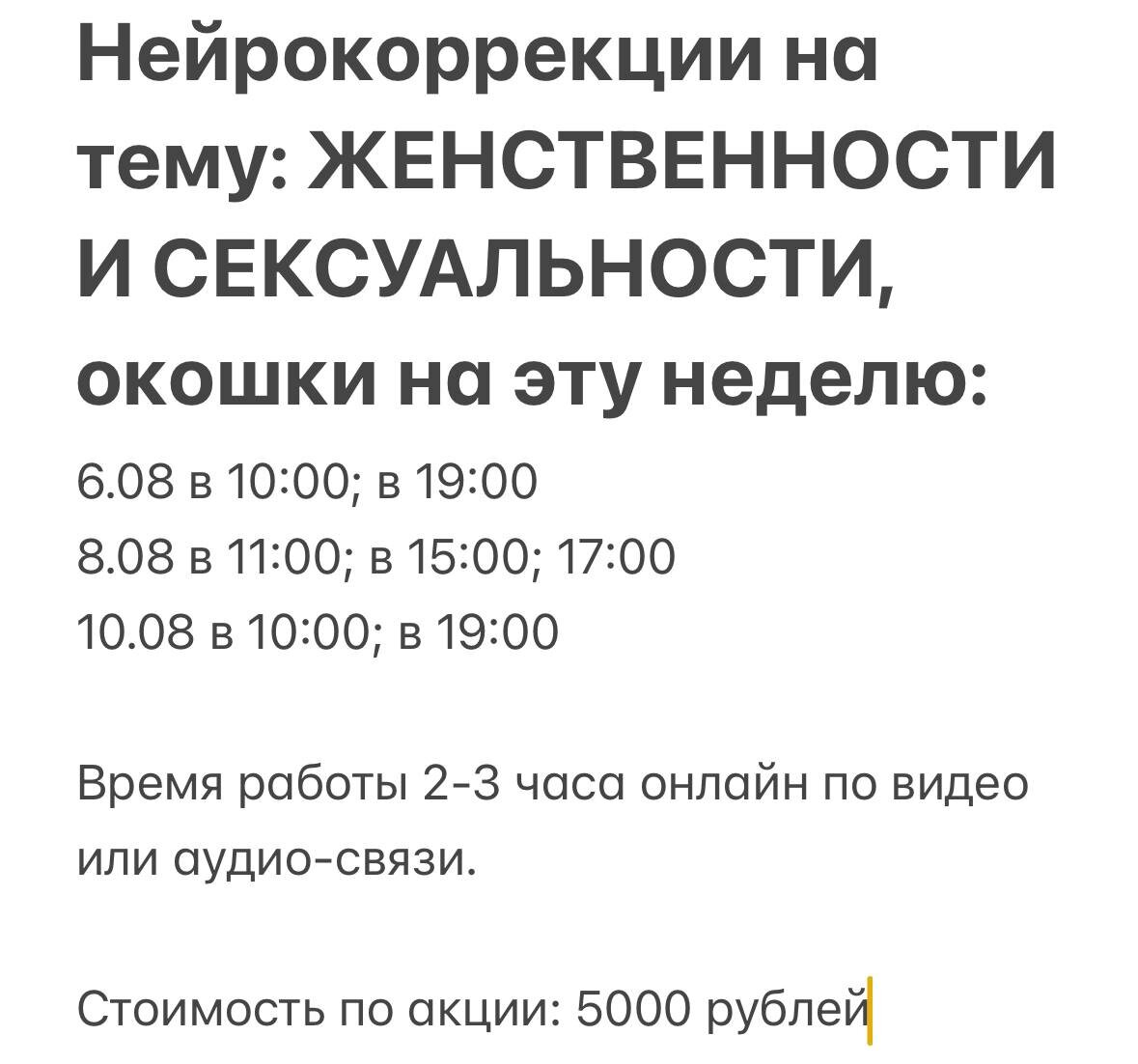 Напоминаю, что акции по тематическим Нейрокоррекциям заканчиваются с 1 сентября.