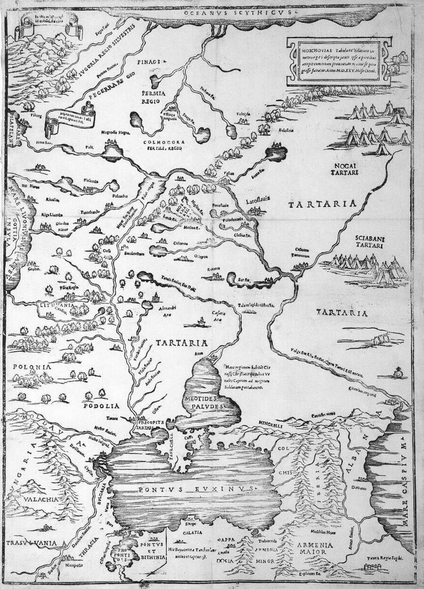 Да, существует карта Московии, составленная Паоло Джовио на основе рассказов Дмитрия Герасимова. Этот картографический труд, созданный в XVI веке, отражает представления о России в то время, как их передал Герасимов, дипломат и переводчик, работавший в Москве. На карте, составленной Джовио, можно увидеть, что территория, названная Московией, изображена со слов Герасимова. Картуш карты: Вверху карты "Московия": Увеличим: В качестве переводчика Герасимов принимал участие во многих посольствах Московского княжества. Он побывал во многих странах Центральной и Северной Европы – источники сообщают о том, что Дмитрий сопровождал послов в Пруссии, Швеции, Дании и Священной Римской Империи. По всей видимости, служение книжника было высоко оценено при княжеском дворе. В 1525 году Василий III доверил Герасимову возглавить поездку к римскому папе Клименту VII. Это посольство примечательно тем, что оно довольно подробно описано в итальянских источниках. Так, подробное описание о пребывании Дмитрия