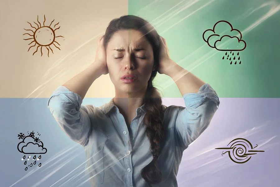 Чувствительность к погодным условиям характеризуется снижением порога реакций вегетативной нервной системы. Пострадавший воспринимает физические реакции на климатические изменения (жару, холод, ветер, влажность), как результат – чувствует усталость, раздражительность, расфокусировку внимания или депрессию.