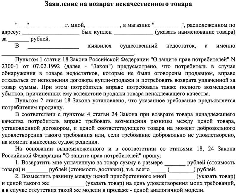 Скачать образец заявление на возврат купальника в магазин можно по ссылке здесь.