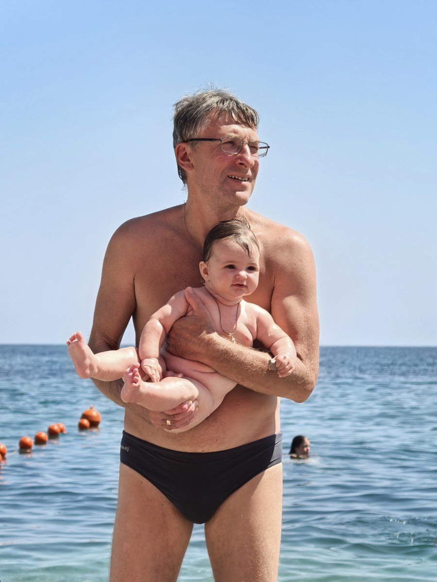 Всем доброго дня! У нас всё отлично, мы всё ещё только купаемся, культурная программа никак не начнется. Сложная штука - демократия, утром спрашиваем, кто за море, кто за горы, кто за музеи. Младшее трио упорно за море, поэтому горы пока без шансов. Но мы терпеливые, да и время еще есть. Танюся отлично поживает, плавает в море и поджаривает потихоньку на солнце свой тюлений организм. Дети не вылезают из воды часами, плавают на сапе, прыгают с волнореза, играют. Все хорошо! Санька - отличный водитель! На выходных рулил на автобусе по Симеизу! Это ювелирная работа. Сегодня взял приус деда и ездил уже дважды сам, забрал друга и привез к нам.