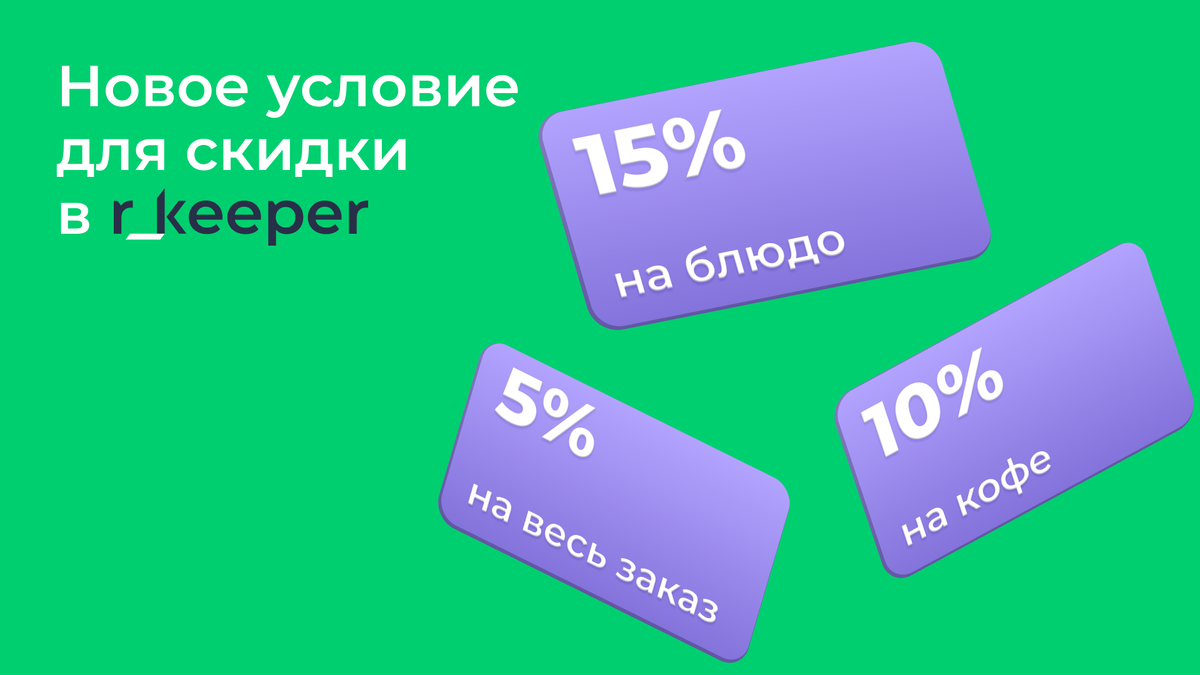 В ресторанном бизнесе конкуренция растет с каждым днем, заведения все чаще прибегают к различным акциям и скидкам, чтобы привлечь клиентов. Скидки в ресторанах и кафе могут быть как временными акциями, так и постоянными предложениями, создавая привлекательные условия для гостей. Система r_keeper предлагает своим пользователям широкий спектр настроек скидок для реализации различных маркетинговых идей: В обновленной версии r_keeper появилась скидка на категорию Х, если в заказе присутствует блюдо из категории Y. Например при заказе пиццы будет скидка 10%, если в этом заказе также присутствует кофе. Настройки для скидки: Скидки в ресторанах и кафе представляют собой взаимовыгодное предложение как для клиентов, которые могут сэкономить на посещении заведений, так и для владельцев, которые с их помощью привлекают новых клиентов, увеличивают объем продаж и формируют лояльную клиентскую базу. Более подробно о настройке и работе со скидками читайте в нашей базе знаний.