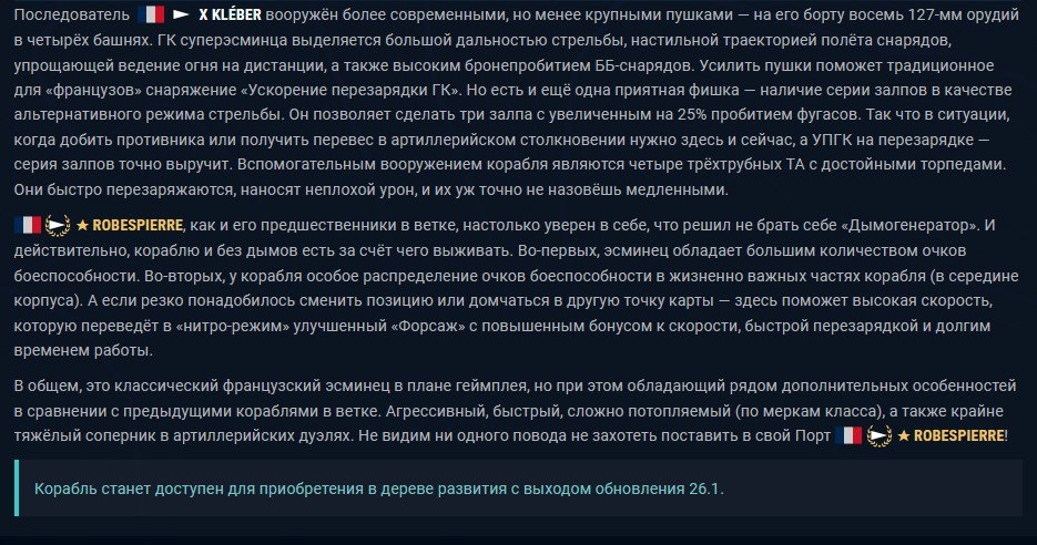 ☝️ Робеспьер всё-таки возглавит ветку Kléber. Но не спешите его искать — случится это только в январе 2026 года. До тех пор корабль будут играть лишь те кто заплатит за ранний доступ в событии обновления 25.8