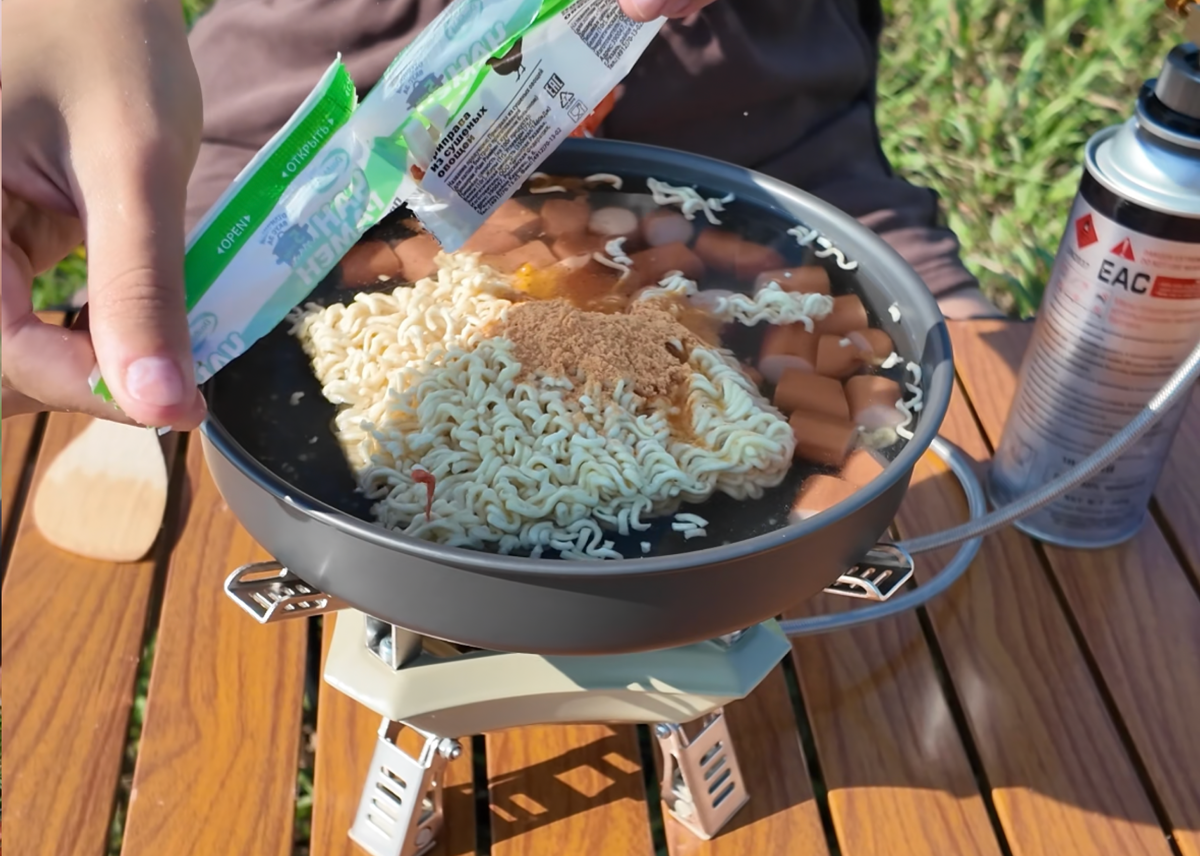 На природе всё кажется вкуснее — будь то обычная каша или сочный бургер. Главное — немного фантазии и минимум оборудования. Делимся простыми рецептами, которые легко сделать прямо у костра или на газовой плитке. 1. Картошка со шкварками Что нужно: картошка, сало, лук, соль, перец. 1. Нарежьте сало и обжарьте до золотистых шкварок. 2. Добавьте картофель и лук, посолите и готовьте до румяной корочки. 3. Подавайте прямо с костра — аромат обеспечен! 2. Лапша быстрого приготовления с сосисками Что нужно: лапша, сосиски, специи. 1. Нарежьте сосиски и добавьте в лапшу при заваривании. 2. Через 5 минут — сытный обед для всей компании готов! 3. Для красоты посыпьте зеленью. 3. Бургеры на скорую руку Что нужно: булочки, котлеты, сыр, овощи, соус. 1. Обжарьте котлеты на плитке или гриле. 2. Слегка подсушите булочки. 3. Соберите бургер и ешьте, пока сыр тает. 4. Жареная рыба с лимоном Что нужно: свежая рыба, соль, перец, лимон. 1. Почистите рыбу, натрите специями. 2. Обжарьте на сковородке на плит