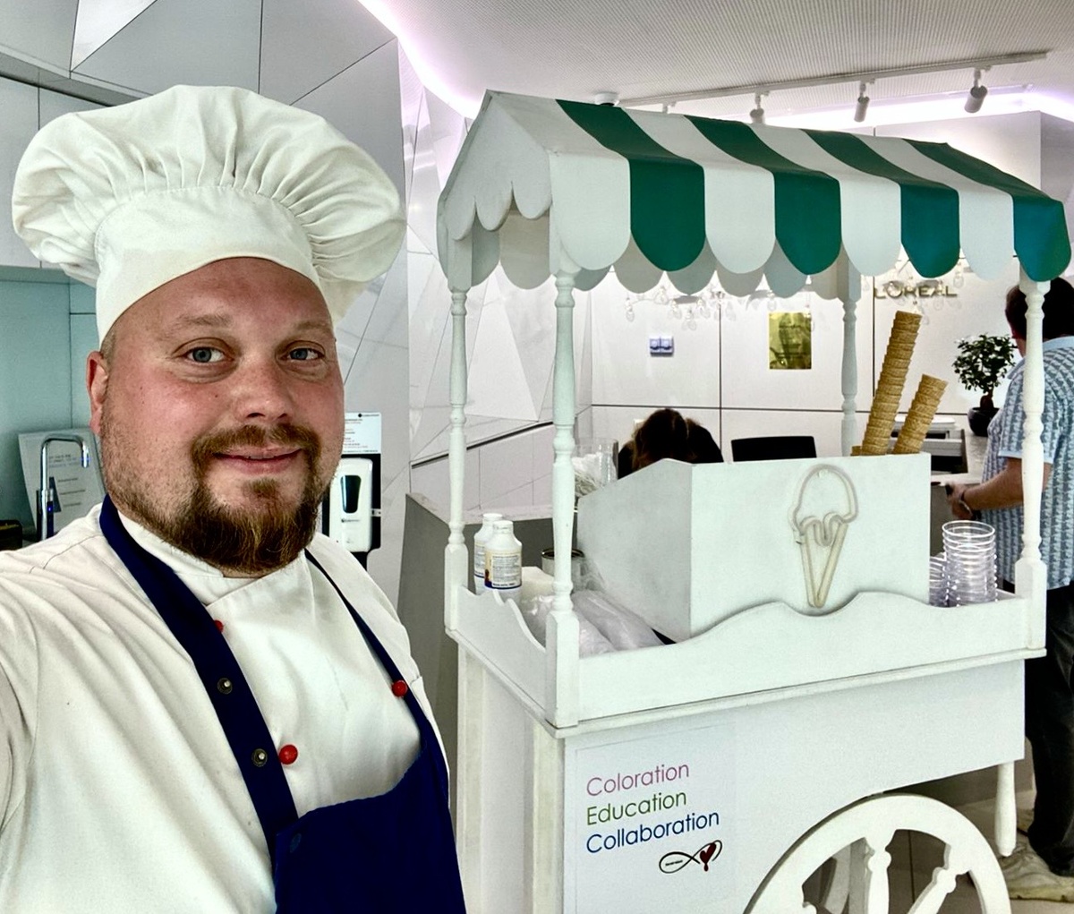 Обаятельный мороженщик Илья привез настоящую итальянскую тележку со вкусным холодным мороженым. Конечно, не так жарко как в Сочи, но что может быть лучше, чем шарик охлаждающего, изумительно вкусного мороженого даже в кондиционированном офисе!?