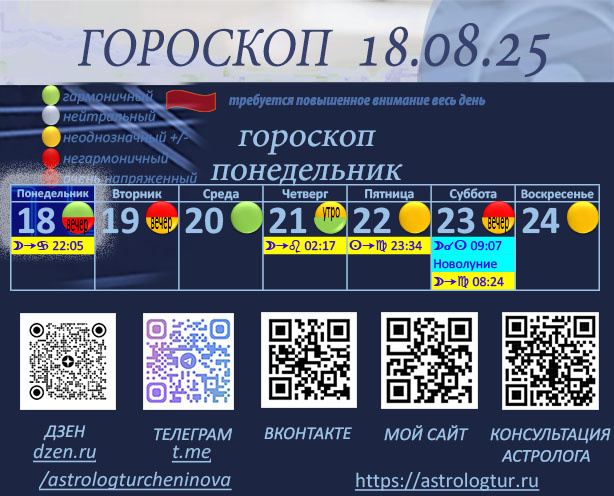 Дорогие подписчики! Чтобы вам было удобнее, я решила опубликовать все гороскопы с 18 по 31 августа 2025 года. В данной публикации вы найдете ссылки на каждый гороскоп за этот период.