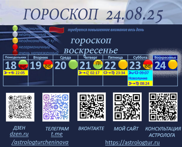 Сегодня Луна продолжает движение по Деве, усиливая внимание к деталям, организованность и стремление к порядку. Это поможет нам быть более сосредоточенными и практичными в делах. Однако день наполнен сложной и интенсивной энергетикой, связанной с кульминацией напряжённого аспекта Солнца с Ураном. Этот аспект приносит неожиданные перемены и вызовы, которые могут нарушить наши планы. Мы можем почувствовать порыв бунтарства, желание освободиться от ограничений и уйти от привычного образа жизни. Например, возможны внезапные изменения в работе, личной жизни, принятие спонтанных решений. Однако с 12:00 до 19:00 (мск) Луна образует благоприятный аспект с Юпитером. Этот аспект приносит удачу, радость и возможность смягчить влияние напряженных энергий дня. В это время мы можем найти поддержку, расширить круг общения, получить нужную информацию или интересное предложение. Этот период, невзирая на кульминацию напряженного аспекта Солнца с Ураном, может принести удачу, успех. Вечером Луна соеди