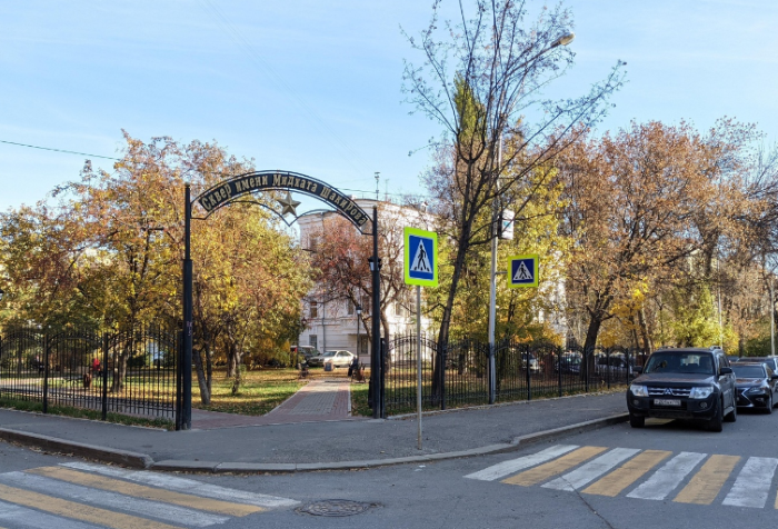 Сквер был заложен в 2016 году, работы завершились в 2020-м. Подрядчик должен заменить кованую ограду и бортовые камни, обновить покрытия проезжей части, пешеходных дорожек и площадки с памятником, организовать освещение, установить цементные вазы и кашпо из Мансуровского гранита, посадить газон и развести цветники. Благоустройство планируют завершить к ноябрю 2025 года.