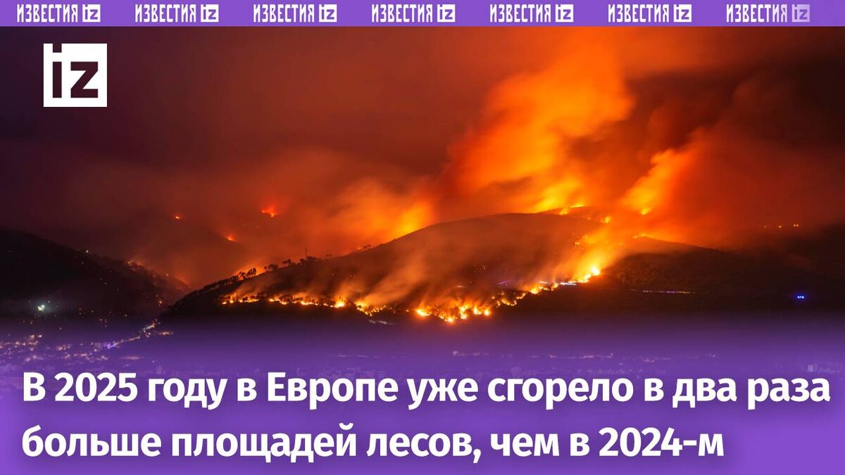 Лесные пожары охватили Европу: огненная стихия бушует в Португалии, Испании, на юге Франции, на Сардинии, в Греции, Болгарии, Албании, Северной Македонии и Турции. Об этом пишет Politico. По данным Объединенного исследовательского центра ЕС, в 2025 году уже сгорело в два раза больше площади по сравнению с аналогичным периодом прошлого года, который стал рекордным сезоном пожаров. Изменение климата только усугубляет ситуацию. Из-за сильного ветра некоторые пожары спасатели не могут потушить долгое время. Риск возникновения новых пожаров остается высоким, добавили в центре. Правительства европейских государств до сих пор не готовы, предупреждают специалисты.