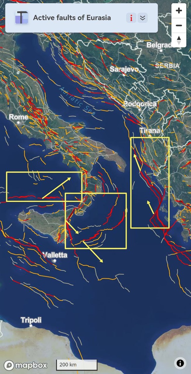Несколько ОСТИ сформировались вокруг южной части Италии. Здесь либо Этна снова попыхтит, либо тряхнуть может на уровне М4.5-5+ в течение 9 дней.