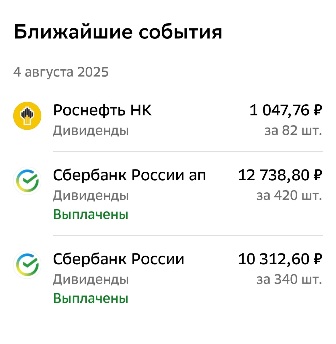 Поздравляю всех с дивидендами от Сбербанка на б/с Сбербанка! (Ещё не пришли в Т-банк). Сегодня я тоже получила их. Сразу же и потратила 😁. Получала частями. Поэтому и тратила частями. Куплено: Лукойл - 2 шт Х5 - 1 ТМК - 1 Интер РАО - 1 лот Сбер префы - 10 шт Фонд валютных облигаций - 2 Рус гидро - 1 лот Татнефть на сдачу - 1 шт Впереди ещё дивы от Роснефти, на которые куплю по мелочи. Спойлер: получила дивы от Роснефти, хватило на 1 лот ТМК. На фото: с сыном ходим в тренажёрку и местные кафе/рестораны. Так проходят каникулы. Получили дивы? Что купили, во что реинвестировали ? Делитесь 🤗