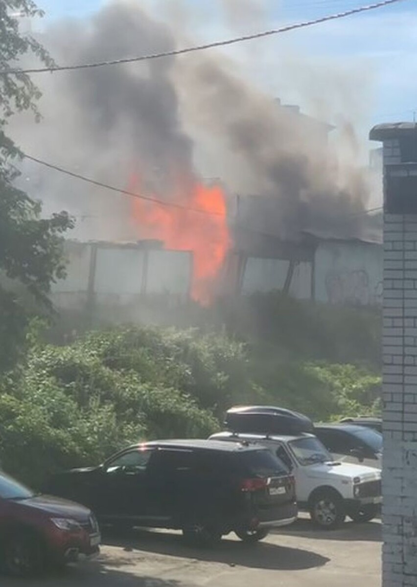 💥Пожар прямо сейчас на территории Ленинского рынка на улице Октябрьская