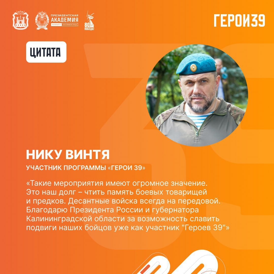 Что важно чтить: память о боевых товарищах В регионе отметили 95-летие Воздушно-десантных войск России. В мероприятии участвовали представители органов власти, ветеранских и молодёжных объединений, военнослужащие и участник региональной образовательной программы «Герои 39» Нику Винтя. Торжественный митинг прошёл у монумента в честь павших в локальных войнах и военных конфликтах. Десантники и их семьи почтили память товарищей минутой молчания и возложили цветы.