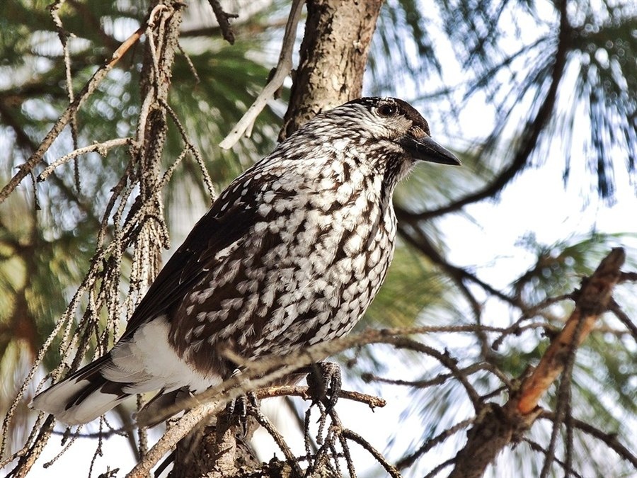 Там, на ветке кедра, отягощенной снежной шапкой, прыгала, раскачивая снежинки, кедровка. Птица-ореховка.