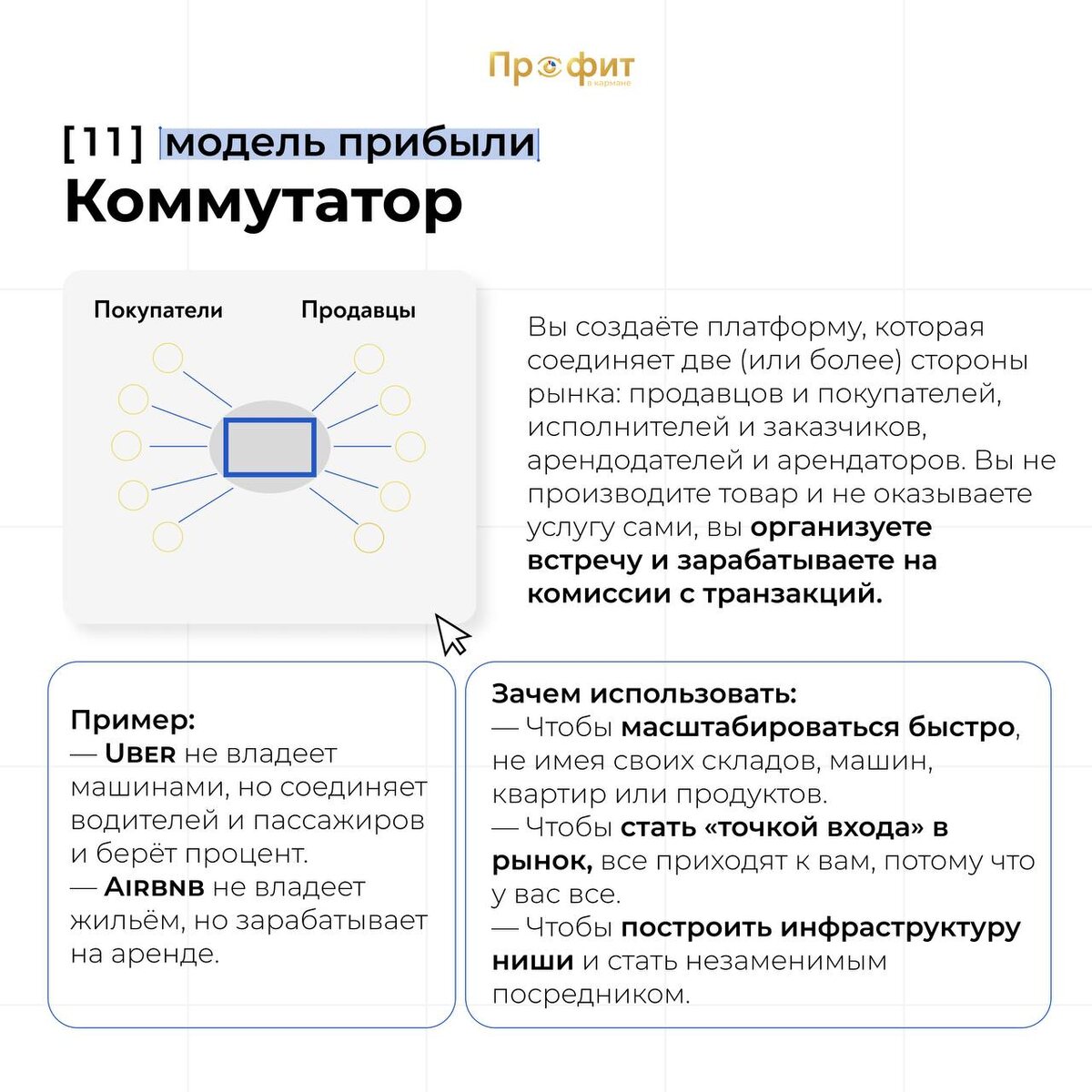 🔎 Продолжаем разбирать модели прибыли (не путать с бизнес-моделями — тут про то, как зарабатывает компания, а не что она делает) Первая часть здесь → В этот раз собрали ещё 6 подходов — от стратегии блокбастера до создания стандартов, к которым все вынуждены подстраиваться. 📦 В финальной части будет ещё несколько нестандартных моделей + шпаргалка, как их комбинировать между собой. Ставьте 🔥, если хотите третью часть!