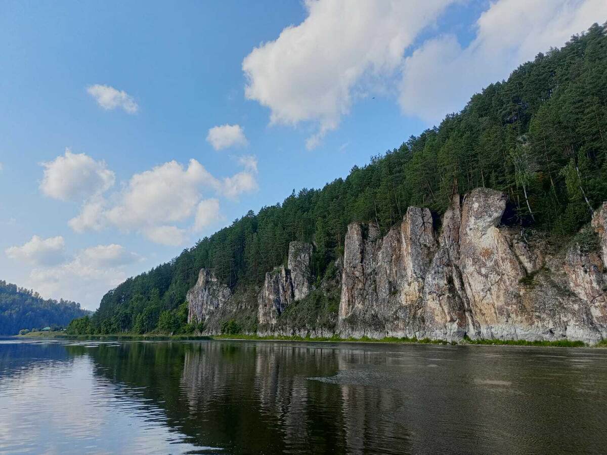 На ночевку остановились возле деревни Усть-Атавка. Она частично заброшена, но сюда наведываются туристы. Люди из соседних районов покупают дома и используют их как дачи. В окрестностях очень красивые прибрежные скалы высотой более 60 метров, поросшие лесом. С их вершин открываются восхитительные панорамы на излучину реки и островки, гармонично вписавшиеся в середину ее русла.