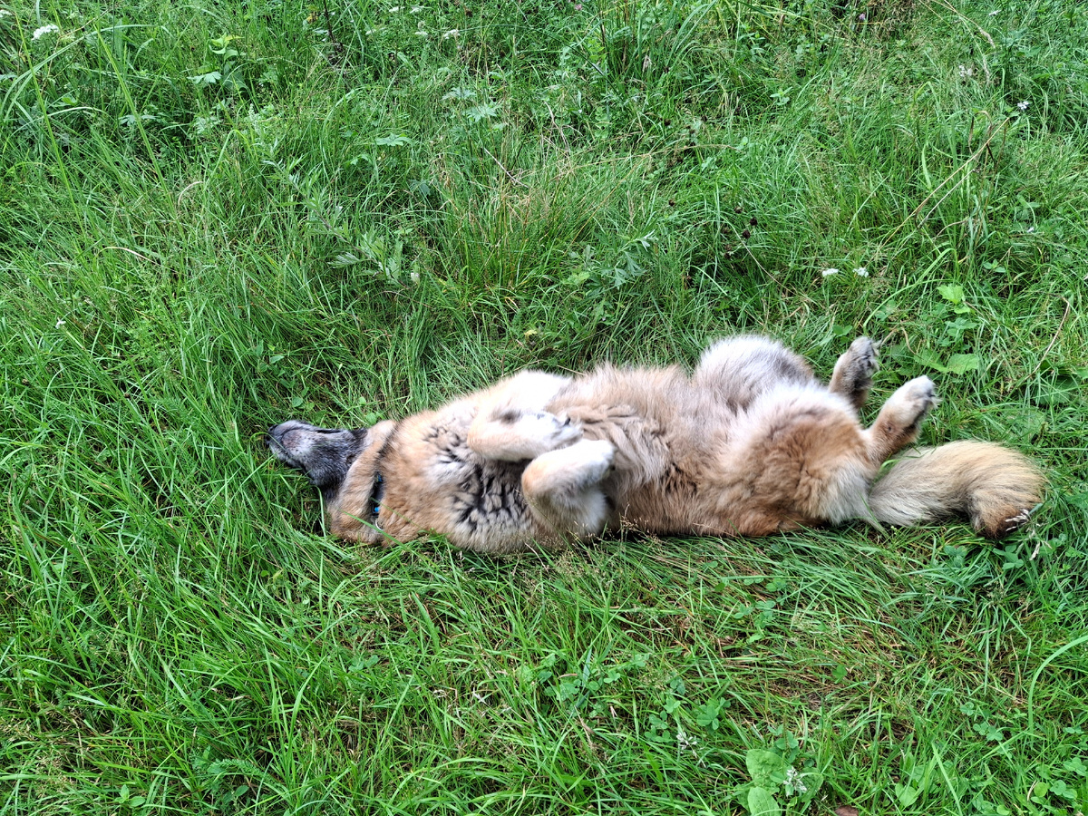 Неделя жары в Подмосковье закончилась. Собака Кира в своей шубе гуляла перебежками: полежит, пойдет, опять полежит и т.д. Жарко! Даже в лесу в тени жарко. Догоняет меня. Собираем последние ягоды. Собака Кира фрукты, овощи не ест, а лесные ягоды ест. Землянику, малину, чернику, иргу. В этом году много ягод рябины. В основном, по краю леса, внутри леса ягод на рябинках нет. В прошлом году в лесу ягод рябины совсем не было. В городе тоже ягод рябины много. И домой отдыхать! С кошкой Томой они делят лежанки мирно, без скандалов :) Сегодня целый день дождь, похолодало до +23. И дальше нежарко обещают. Гулять будет легче.