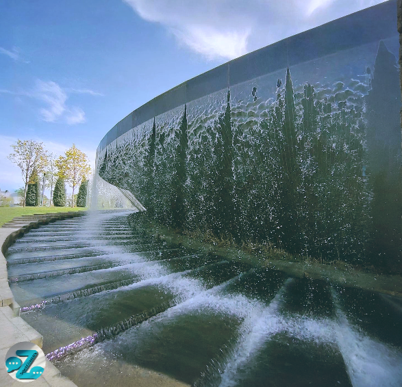 Архитекторы подошли к делу с душой — фонтан получился не только стильным, но и по-настоящему философским. Плавные формы, отражения, игра теней — всё работает как единое целое. Это не просто вода — это маленькая медитация посреди города.
