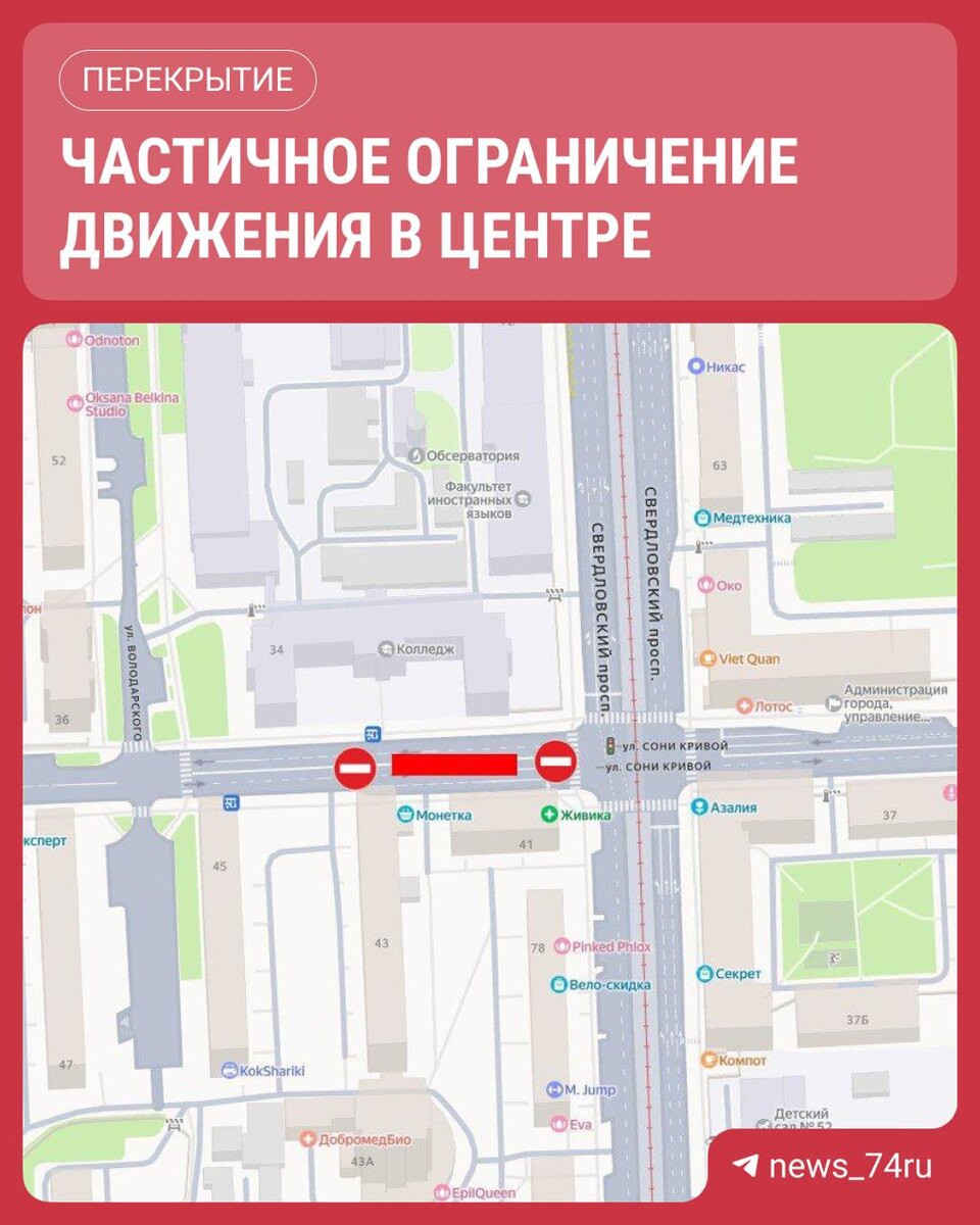 Еще одно перекрытие в центре На этот раз ограничили движение на улице Сони Кривой от дома № 43 до пересечения со Свердловским проспектом. Там идет ремонт теплотрассы. Планируют закончить до 6 часов 18 августа.