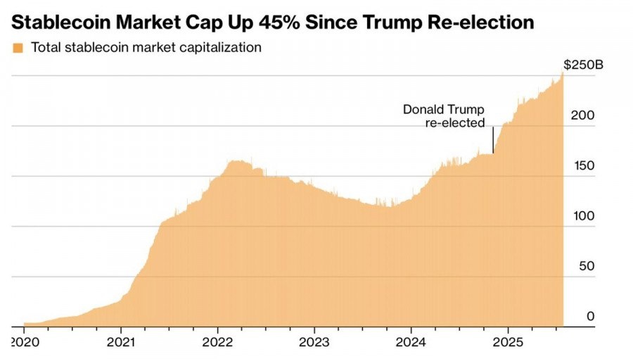Эйфория крипторынка по поводу принятия американским Конгрессом закона о стейблкойнах постепенно отступает. Стабильные монеты привлекают внимание крупных инвесторов и ритейлеров, их капитализация после вступления Дональда Трампа в должность президента США увеличилась до $256 млрд. Однако закон сам по себе не заставит инвесторов покупать BTC/USD. В Европе такие законы уже давно действуют, однако капитализация стейблкойнов в евро составляет мизерные $403 млн.