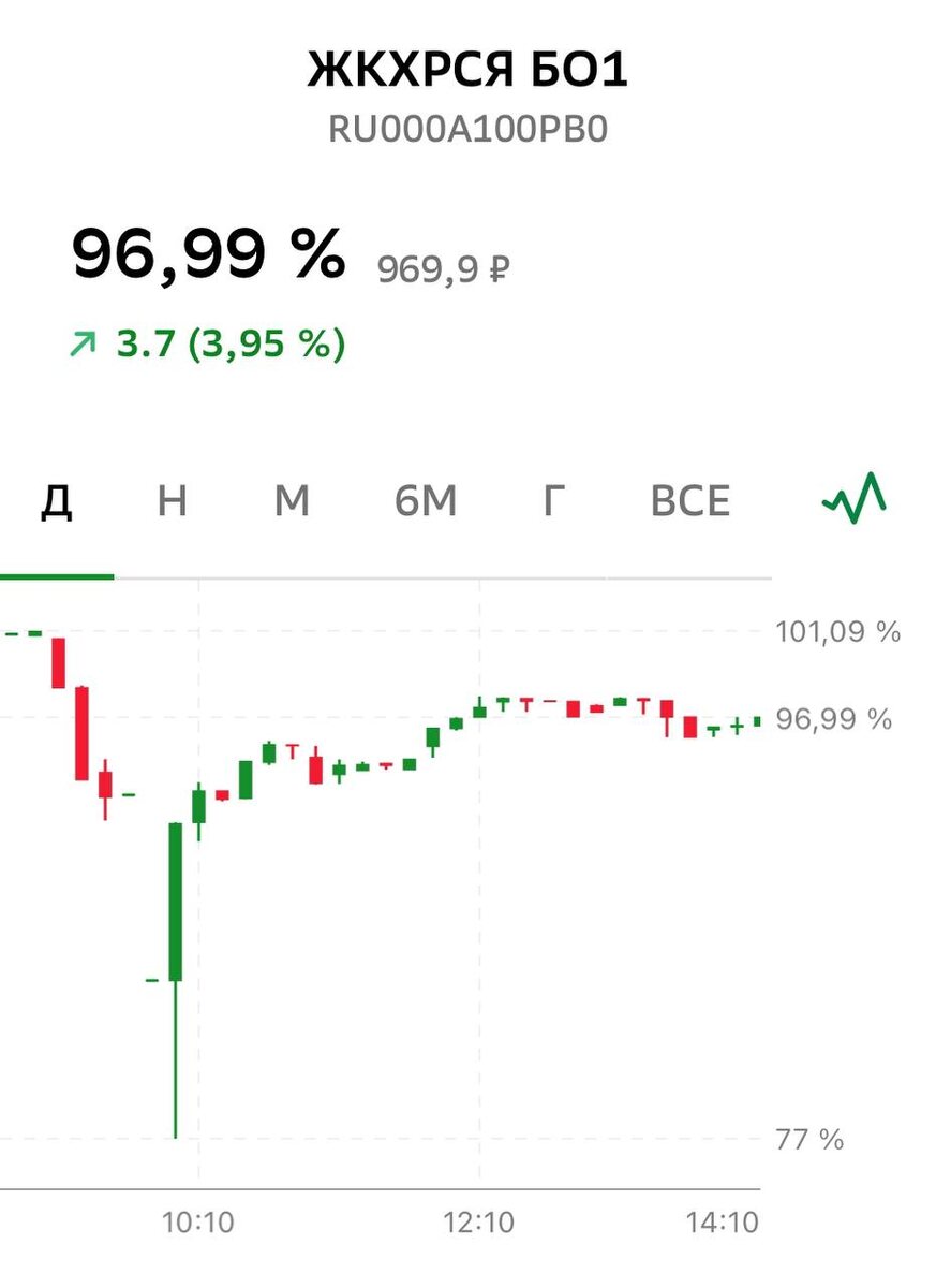 ☝️Ожидаемо утром прошли распродажи в облигациях ЖКХ РС(Я), но потом ценам ушла выше уровней открытия Напомню, что в пятницу эмитент допустил техдефолт по выкупу облигаций, предъявленных к оферте с ссылкой на согласование платежа. Почему так происходит? Выходят как паникеры, так и фонды, которые по своим правилам вынуждены продавать в рынок в рамках риск менеджмента. Ну, а те, кто не ждут банкротства ГУПа могли прикупить и сделать почти 20% от низов на 2 часа… Кто-то из читателей покупал? #облигации, #техдефолт