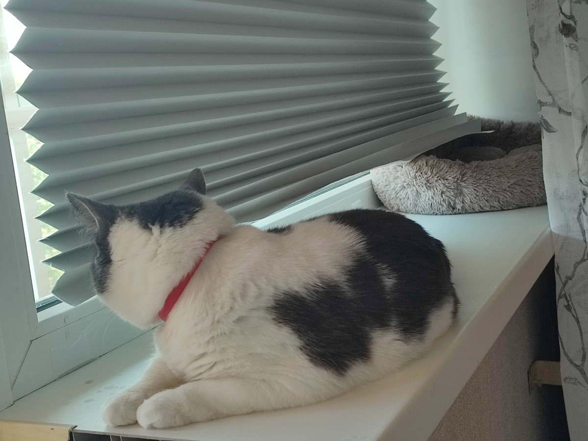 Понедельник. 04.08.25. У нас снова +27, солнце шпарит и в квартире находиться невозможно. Второй месяц сижу днем в темноте, с зашторенными окнами и включённым вентилятором. Радости от такого лета мало. Сегодня вдруг осознала, что бОльшая часть 2025 года уже позади. Вот это сюрприз. Помню зиму в Соломенном, весну на Невского, а как почти пролетело лето..? Такого активного года в моей жизни ещё не было. Наверное. Накопилась усталость, ещё и эта жара. Здесь была информация про кондиционер, но в связи с невозможностью его установки, я ее убрала. Сегодня с утра сидела под лампой и вязала палантин из кауни. Искусственное освещение в помещении не люблю после пары пережитых полярных ночей в Мурманске. Но выбора сейчас нет. Так вот. Пока вязала палантин, Мартыша штурмовала шкаф. Так ей понравилось вчера валяться на полке, что сегодня она этот шкаф пыталась открыть. Совершила три подхода. Я даже на видео это сняла) Спойлер, у нее ничего не получилось. Зато, когда я пыталась сфотографировать п