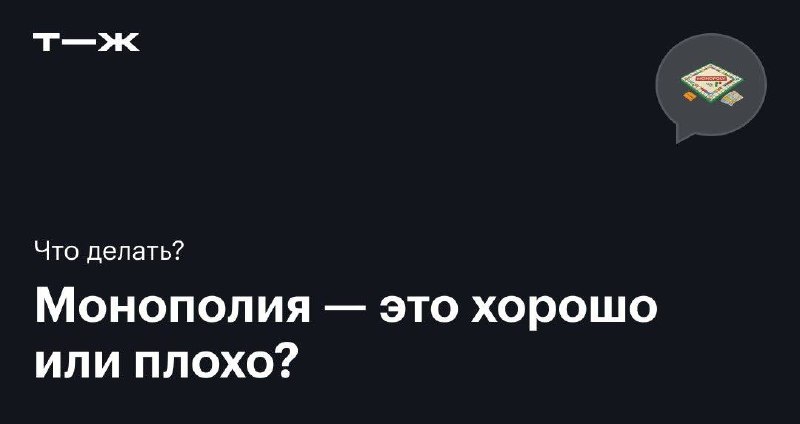 Монополия — это когда одна компания доминирует в отрасли. Конкурентов нет или им не пробиться на рынок из-за барьеров. Обычно отсутствие конкуренции — это плохо: растут цены, снижается качество, а у потребителей нет выбора. Но бывают исключения. Рассказываем подробнее про устройство монополий и что делает ФАС, чтобы их контролировать: https://t-j.ru/inv-tg/monopoly/