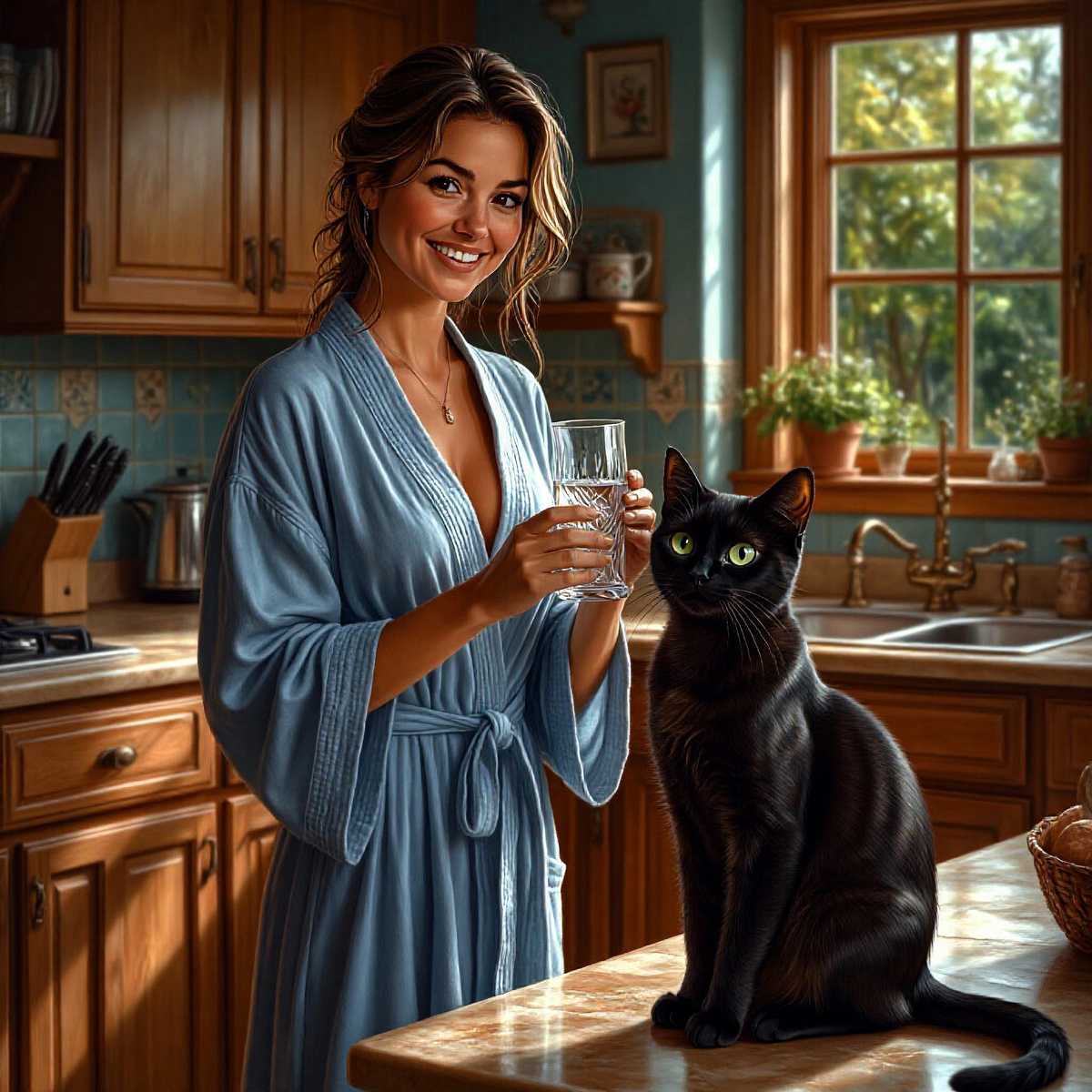 *Дорогие подруги! Порой наши ритуалы дают неожиданные результаты... особенно если в доме есть черный кот с тонким чувством прекрасного (и вкусной рыбки)! Барон напоминает нам: самое сильное волшебство – в простых вещах: любви, смехе и утреннем чае с тем, кто мурлычет у ног. А вы заряжали лунную воду? Делитесь смешными историями!* ✨😺