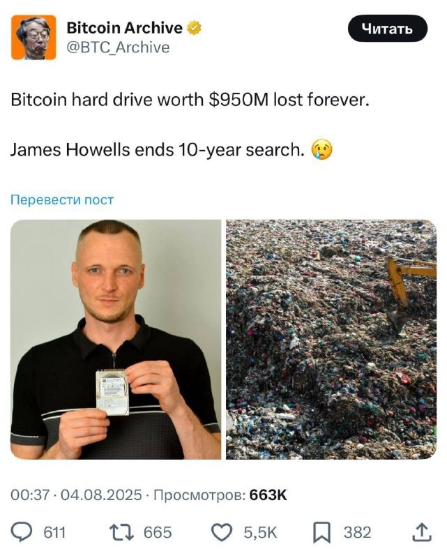 Финита ля комедия: Джеймс Хауэллс официально прекратил охоту за жёстким диском с биткоинами на $950 млн. История начиналась ещё в 2013 году, когда он по ошибке выкинул диск со своими BTC на мусорку. С тех пор — 12 лет борьбы: заявки в администрацию города, предложения поделиться прибылью, даже планы подключить роботов и ИИ к раскопкам. Но власти были непреклонны. Теперь — всё. Руки опустились. Миллионы — где-то глубоко под слоями пластика и банановой кожуры. 🫡 Удачи в следующей жизни, бро. Подробнее: https://hard-tm.su/threads/105777/ 🕹HARD-TM — Подписаться