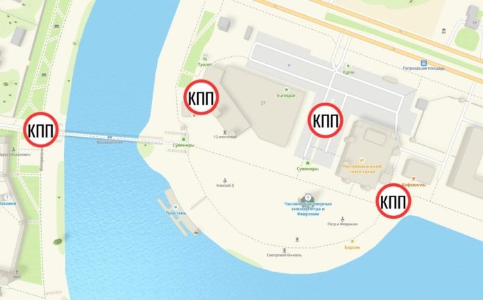 Для обеспечения безопасности на подходах к площади будут работать четыре контрольно-пропускных пункта. Все входы оснастят рамками металлодетекторов, дежурство организуют сотрудники правоохранительных органов.