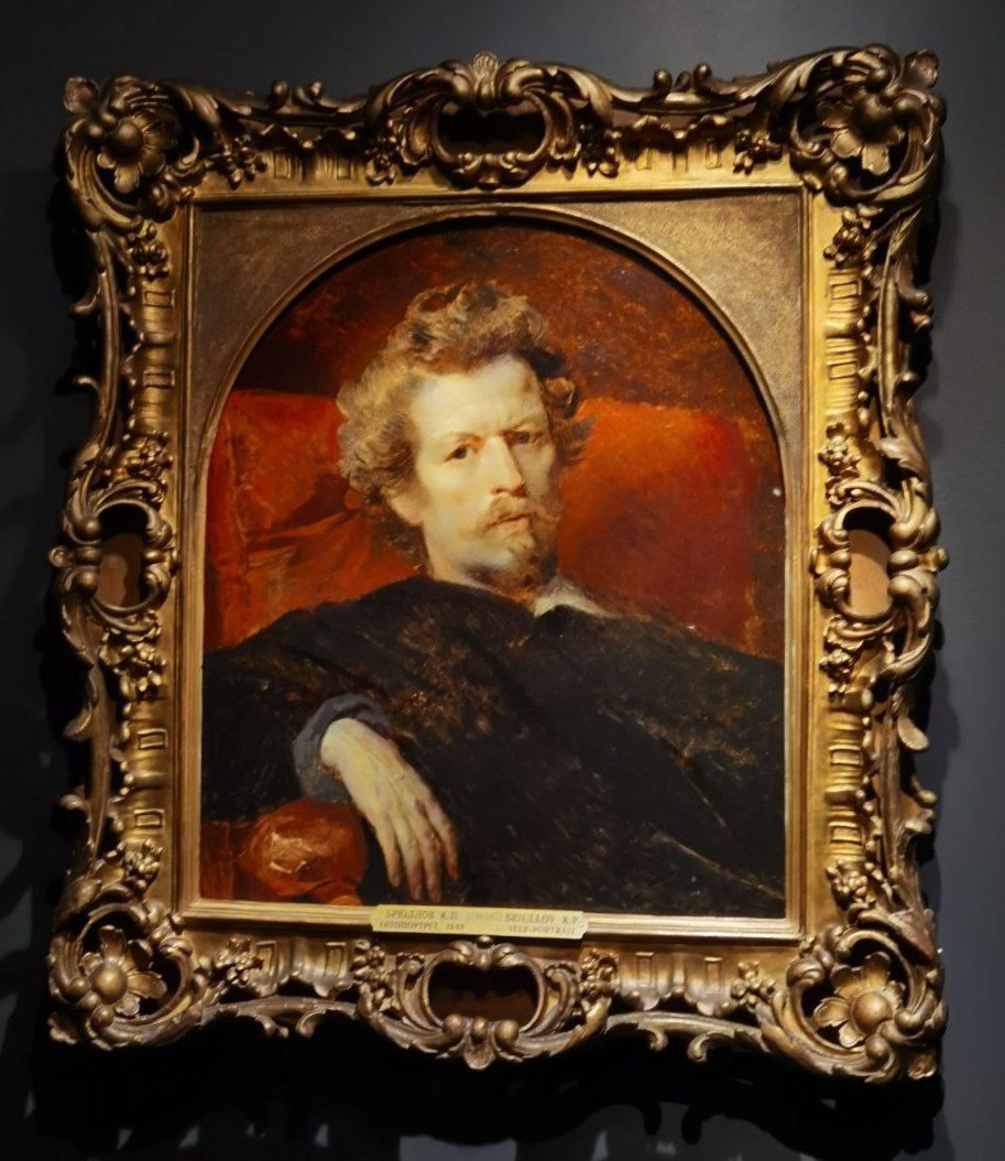 То есть по факту это был такой обаятельный пухляш низкого роста с шикарной шевелюрой, который не имеет ничего общего с тем образом, к которому мы привыкли. Всё дело в том, что на самом его известном автопортрете, он изобразил себя в тяжёлый момент жизни, когда серьёзно заболел после росписи Исакиевского собора. Был измождён и лежал несколько месяцев, не вставая с постели. Получается, что в нашем сознании отпечатался образ человека в момент его слабости, в совершенно нетипичном для него состоянии.